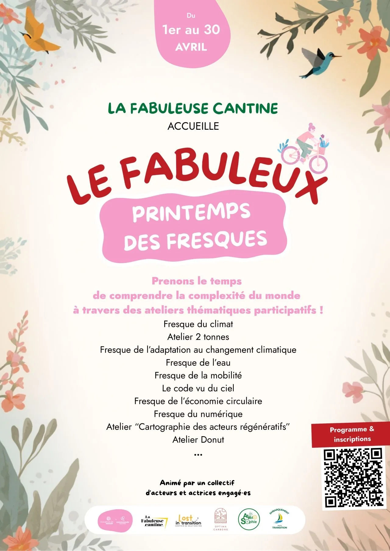 Le mois d’avril s’annonce comme un temps fort pour toutes celles et ceux qui souhaitent mieux comprendre les transitions en cours et s’outiller pour y contribuer. À La Rochelle, La Fabuleuse Cantine et un collectif d’acteurs engagés lancent le Fabuleux Printemps des Fresques : une programmation dense d’ateliers participatifs pour explorer les enjeux environnementaux, économiques et sociétaux sous un angle accessible, collectif et stimulant.